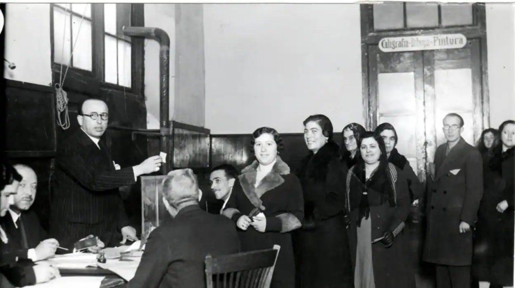 Some Spanish women voted for the first time on the 5th of November in 1933, and the rest on the 19th of that same month. Sadly, they lost their right to vote when Franco won the Civil War in 1939. Fascist Italy and Nazi Germany forbade feminist associations on 1938 and 1933, respectively.